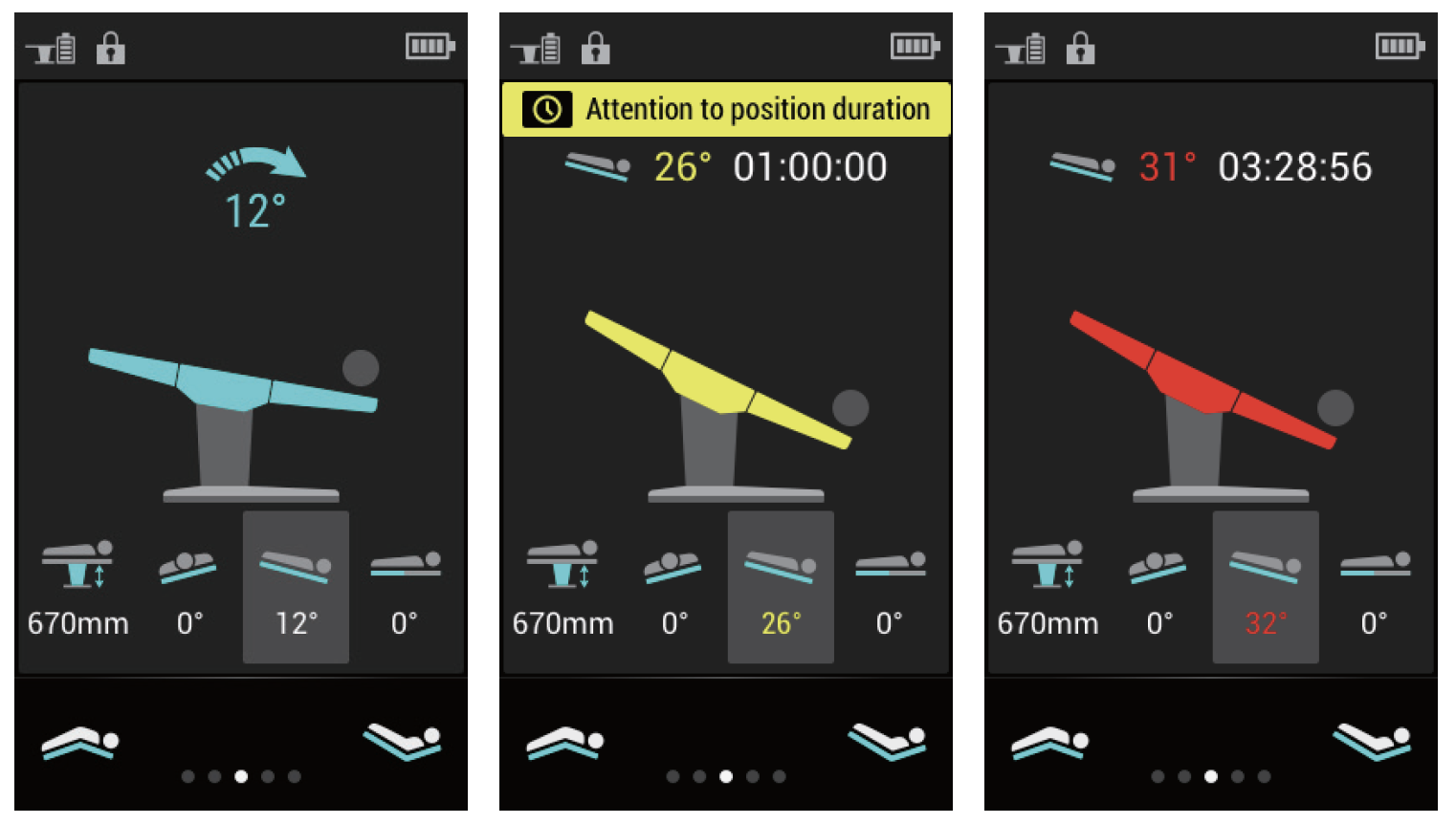 (2) Different color status indicates the urgency of the warning, corresponding to the angle of the patient's position;